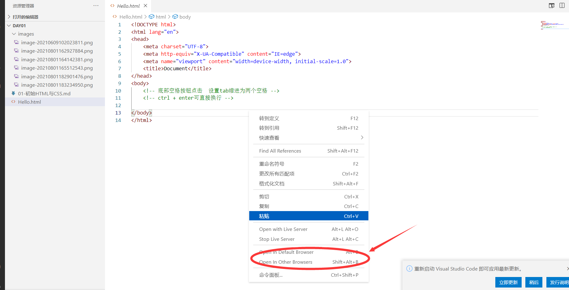 open in browser - 可以在默认浏览器或应用程序中打开当前文件