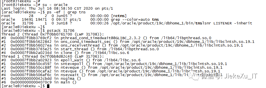 下面我们使用 pstack 跟踪一下 监听日志进程。