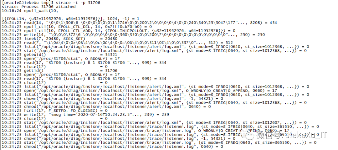 最后也使用操作系统跟踪命令跟踪 sqlplus 连接过程,从而观察跟踪文件。要是没有 strace 也需要安装一下。