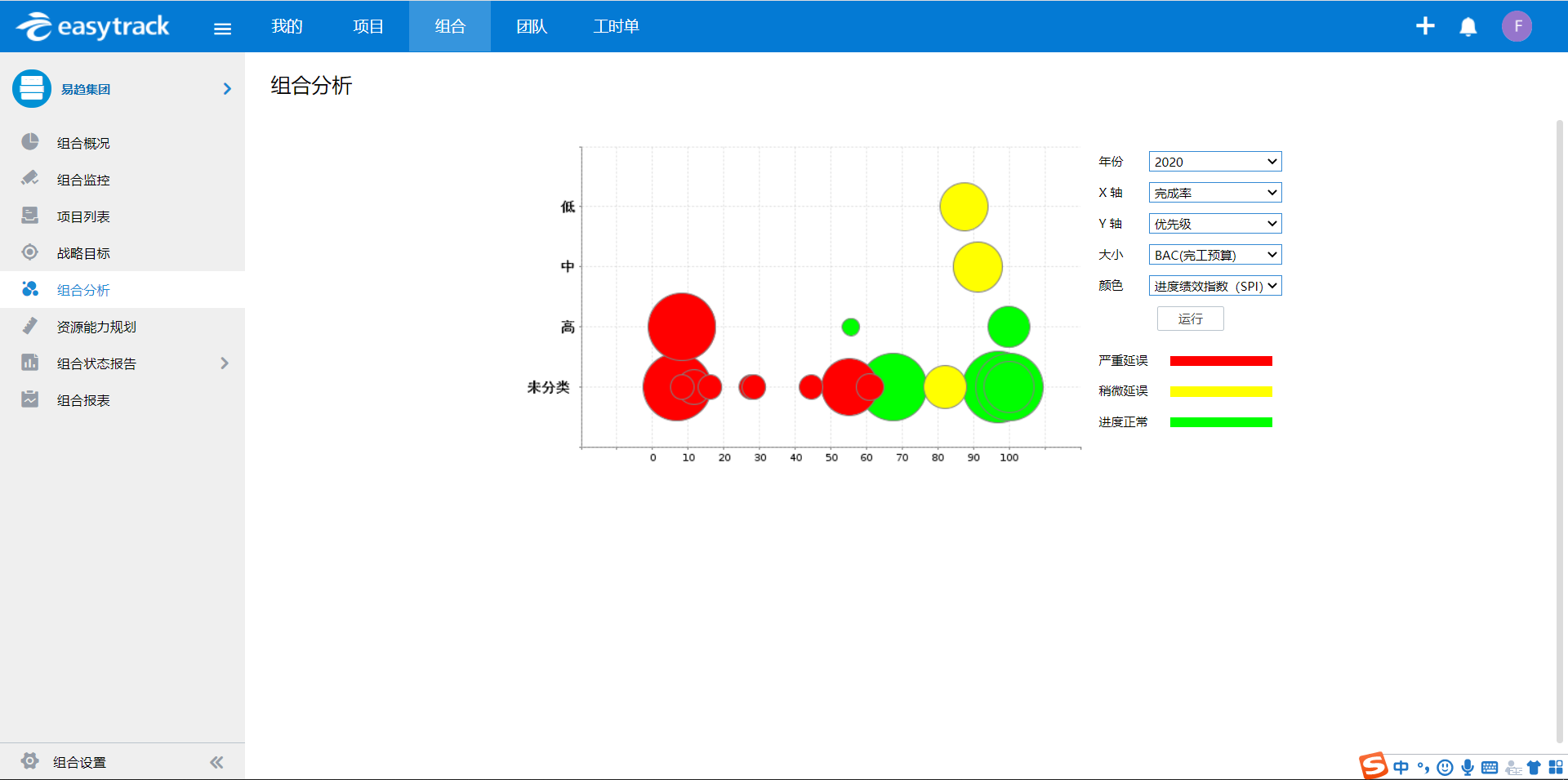 在人员监控方面,让企业的团队管理以项目的维度进行,资源经理/部门经理就也可以监控到项目的状态,了解项目的资源分配状态,因此减少资源分配不合理的情况,如图是团队管理模式下的项目健康状态: