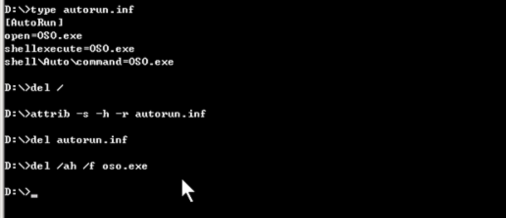 删除相应盘符下的autorun.ini,以防双击运行盘符再次调用病毒运行