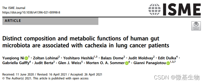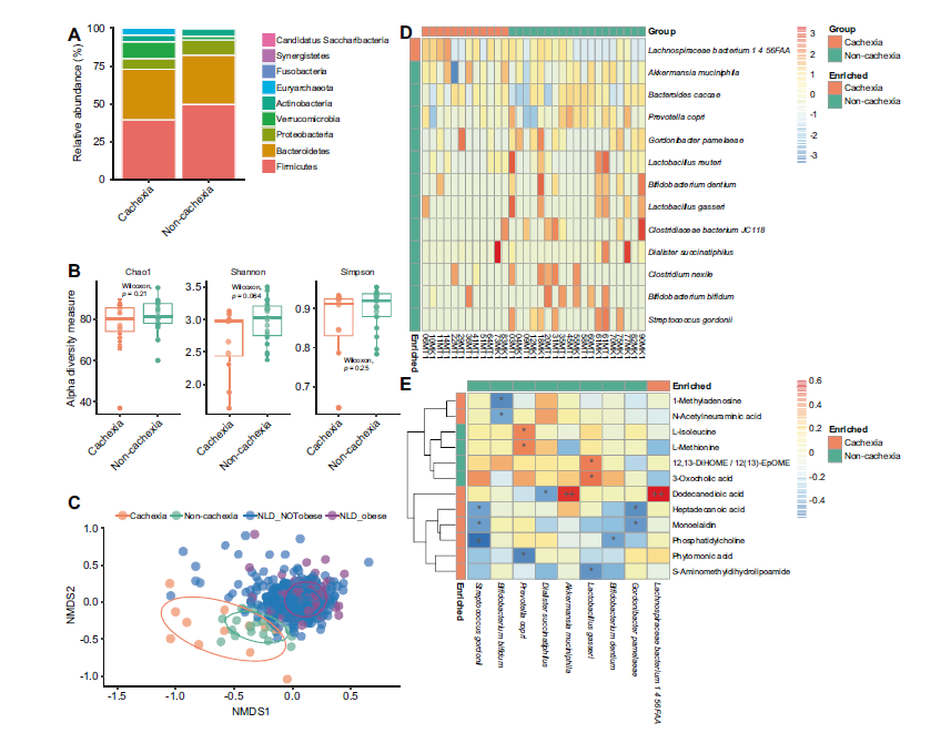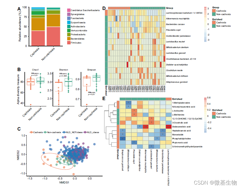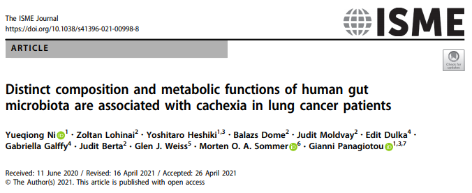 参考文献:Ni, Y., Lohinai, Z., Heshiki, Y. et al. Distinct composition and metabolic functions of human gut microbiota are associated with cachexia in lung cancer patients. ISME J (2021).