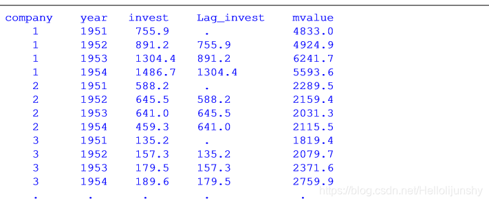 需要取对数的话,输入gen lny=ln(y) 取对数;gen Lag_invest = L.invest产生一阶滞后