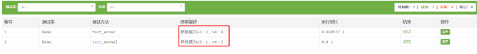 class Demo(unittest.TestCase):@ddt.data({"v3": 1, "v4": 2, "case_name": "test_normal"}, {"v3": 3, "v4": 4, "case_name": "test_error"}) # 在数据中定义case_name的key,值就为用例名称@ddt.unpackdef test_case(self, v3, v4, case_name):"""参数值为v3:{v3},v4:{v4}"""print(f"v3:{v3} v4:{v4}")
