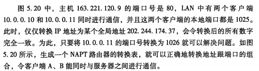 当私有网络内的多台主机都要进行通信时,仅仅转换IP地址,可能会担心IP地址不够用,这是采用端口号转行方式(NAPT)可以解决这个问题