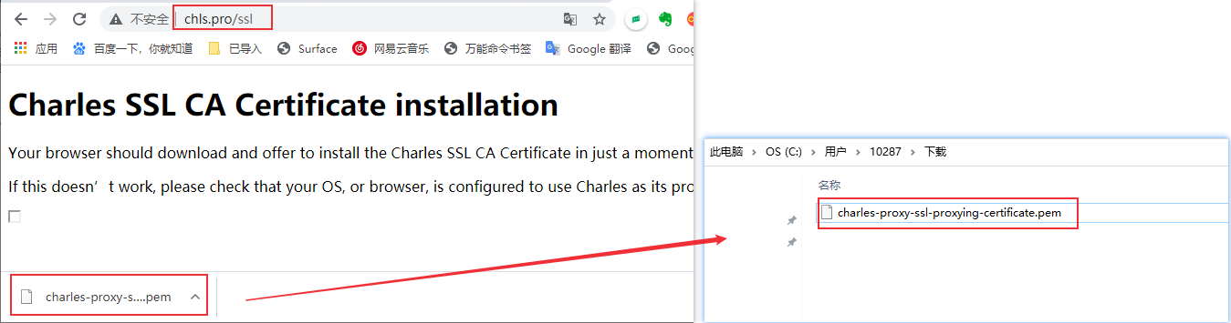浏览器地址栏输入“chls.pro/ssl” 下载证书