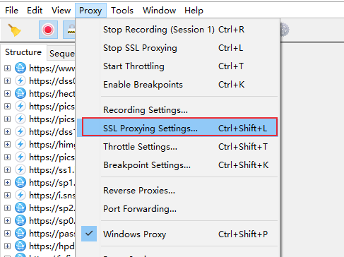 选择 “Proxy” -> “SSL Proxying Settings”