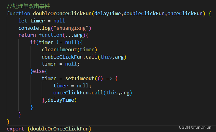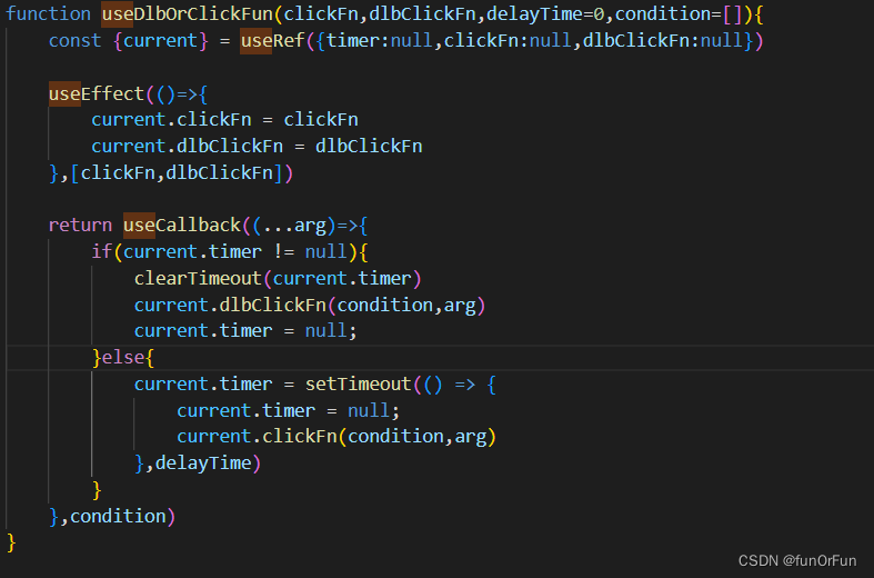 第一个实参为单击函数,第二是实参为双击函数,第三个实参为延迟事件,第四个实参为uesCallback依赖参数输入;