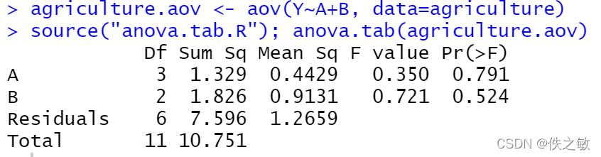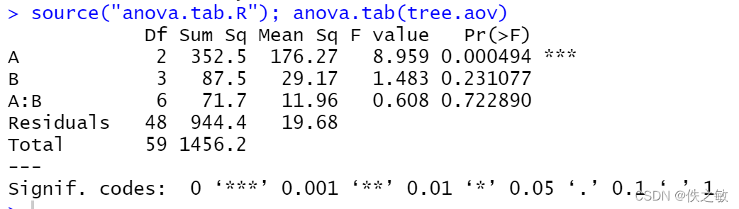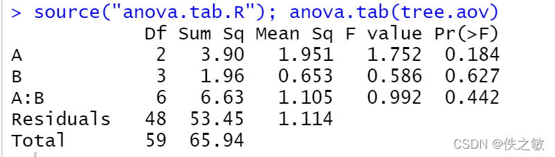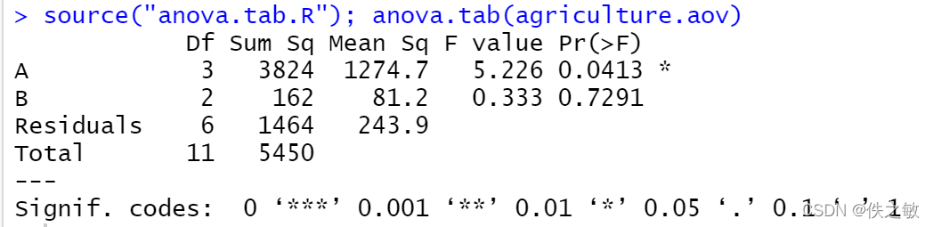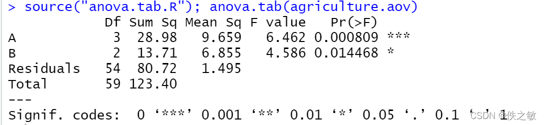 anova.tab是自编函数,用以得到方差分析表。