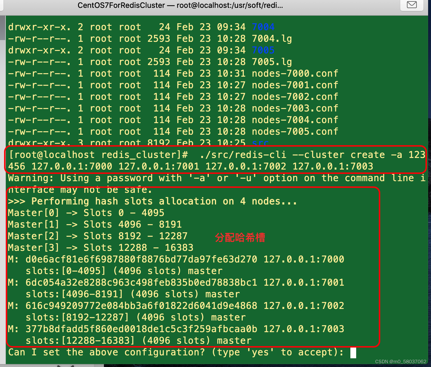 # ./src/redis-cli --cluster create -a 123456 127.0.0.1:7000 127.0.0.1:7001 127.0.0.1:7002 127.0.0.1:7003 127.0.0.1:7004 127.0.0.1:7005 --cluster-replicas 1