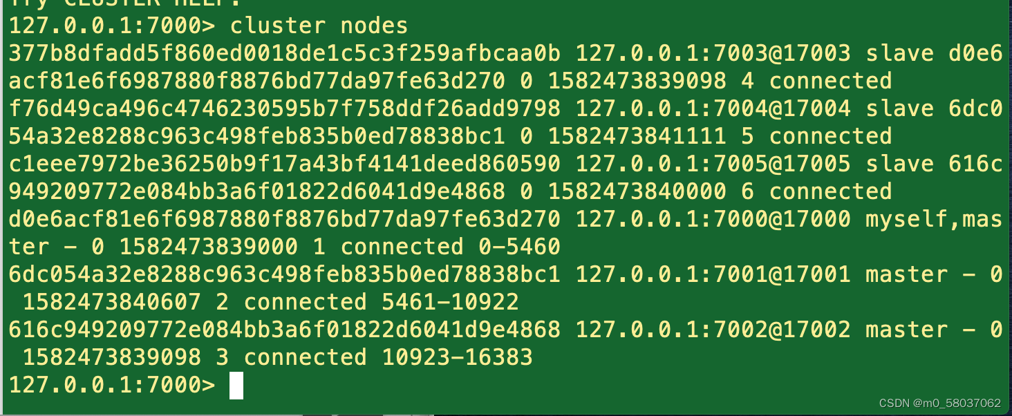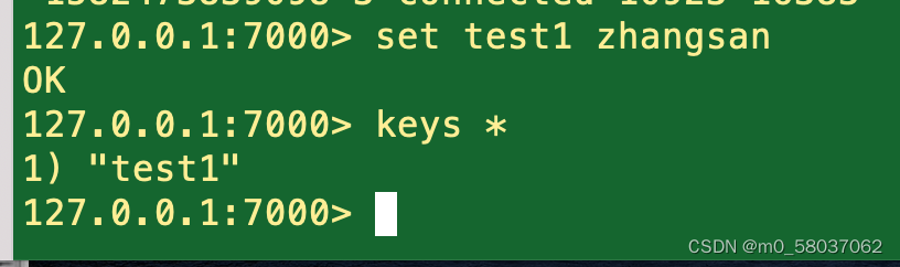 在某台机器上连接集群的7000端口的节点:(注意- c 千万不能忘记,否则集群不生效,其他节点不会复制当前节点的操作)