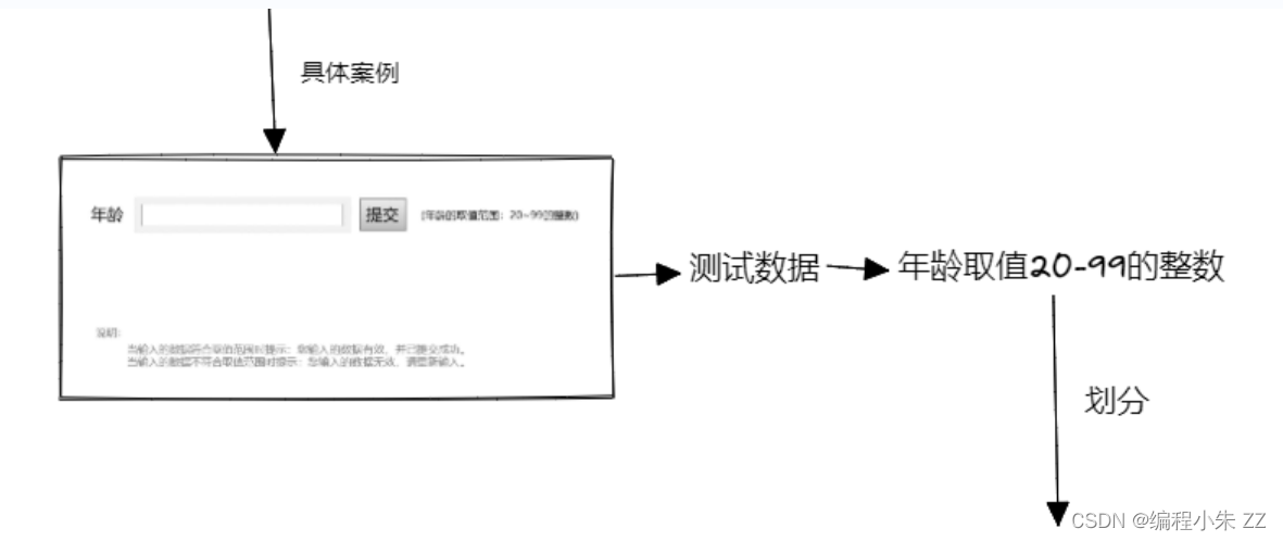 比如说这一个年龄输入模块,他肯定先给你一个地址 URL 输入到浏览器里面,你还能打开这个模块看到这个界面,然后它会有一个输入框。第二步就是在这个输入框里面输入你要测试的那个值,这个值之前也说过,有效等价类和无效等价类的代表值。