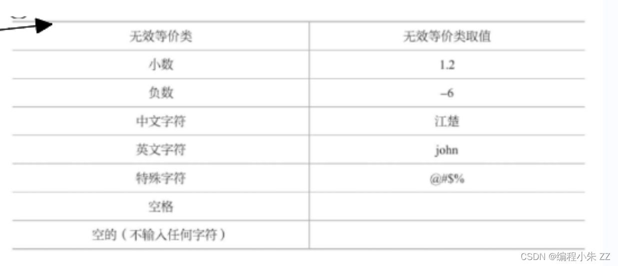 大于 99 的取101,取的这个值就是一个代表值。还有非整数取得的小数、负数、中文也是这些代表值。把这些代表值一一罗列出来,就可以作为测试用例的测试点了。所以最后我们就形成了一个表格,就是有输入条件。