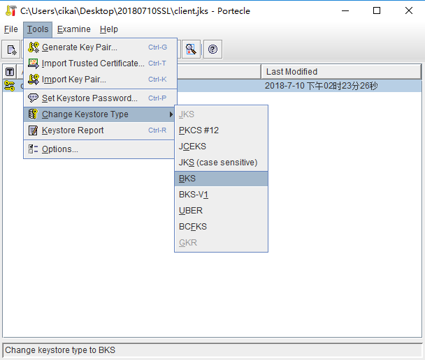 4.选择 Tools -> Change Keystore Type,修改为 BKS