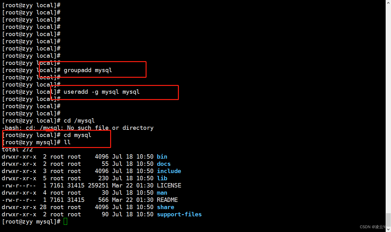 【前面很简单,就是官网下载,拉取到shell,解压,创建软连接并改名,在这里解释一下我用软连接的好处,可以看到MySQL的版本,直接改名MySQL,时间长了不一定记得】