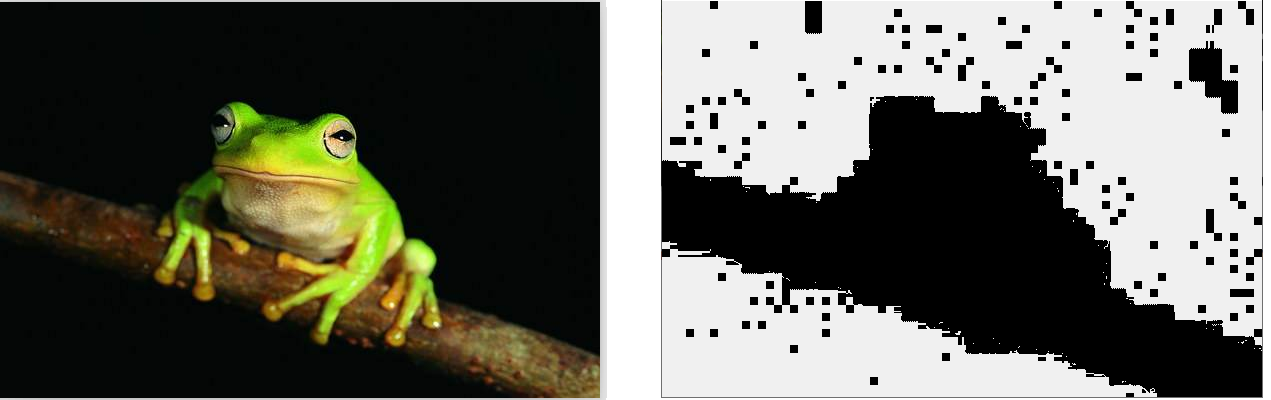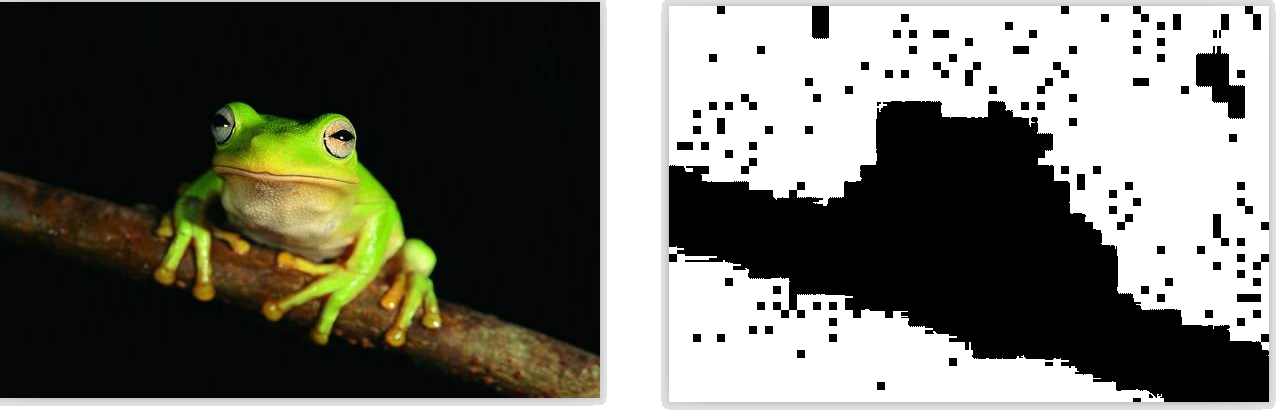 QPixmap img("c:\\5.jpg");QBitmap map = img.createMaskFromColor(QColor("#050706"),Qt::MaskOutColor);QLabel label;label.setPixmap(map);label.show();