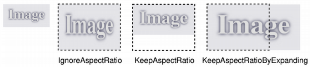 - Qt::KeepAspectRatioByExpanding:尺寸被缩放到给定矩形之外的一个尽可能小的矩形,保持纵横比。