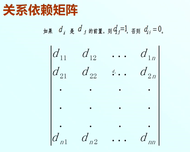 我们根据任务的依赖关系,可以确认项目任务关系依赖矩阵,例如这个图:其中d (i,j)=1,标识d(i)是d(j)的前置,否则d(i,j)等于0;