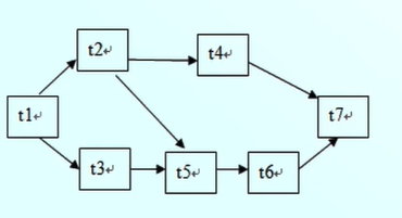 例如这是某项目的网络关系图,他说明了任务之间的关联关系,其中他t1是t2、t3的前置,通过这些关系,我们可以的得出依赖矩阵。