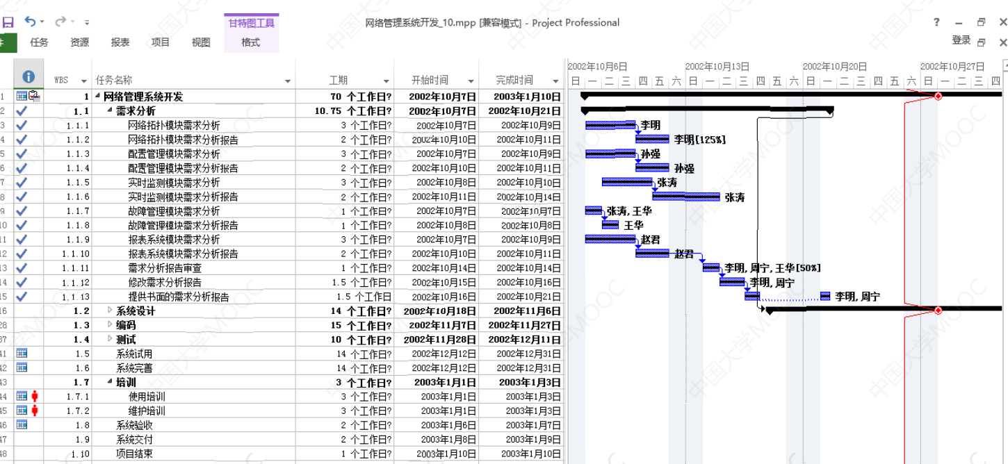 甘特图可以显示任务的基本信息,方便查看任务的工期,开始和结束时间以及资源的信息。