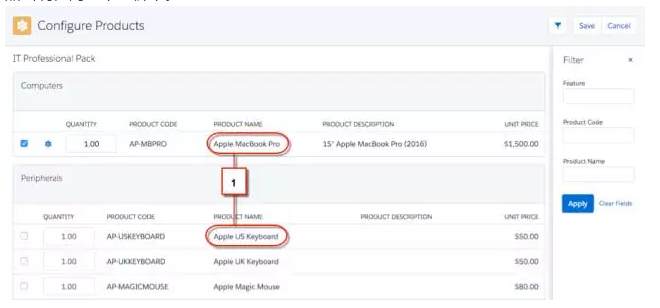 一开始你会问客户一些简单的问题和他们的期望。例如,你的客户是企业、政府还是学术机构?根据客户的答案和其他特定的销售流程问题,你会查看到一个定制的产品列表。Salesforce CPQ利用智能的规则来确保你和你的销售代表销售销售的是相关 [1] 的产品并确保不兼容的产品出现在同一个报价中。
