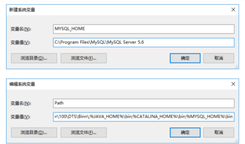 MYSQL_HOME要使用mysql的安装目录,PATH是%MYSQL_HOME%\bin