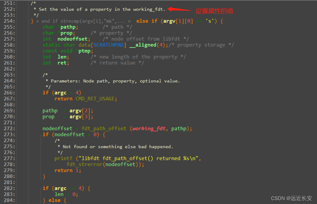 fdt_setpropfdt_setprop_placeholder // 为新值在DTB中腾出位置fdt_get_property_w // 得到老值的长度 oldlenfdt_splice_struct_ // 腾空间fdt_splice_ // 使用memmove移动DTB数据, 移动(newlen-oldlen)fdt_set_size_dt_struct // 修改DTB头部, size_dt_structfdt_set_off_dt_strings // 修改DTB头部, off_dt_stringsmemcpy(prop_data, val, len); // 在DTB中存入新值