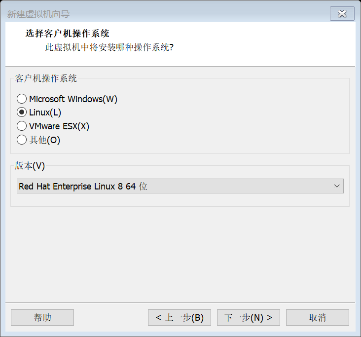 - 选择【Linux】操作系统,版本为【Red Hat Enterprise Linux 8 64位】,点击下一步