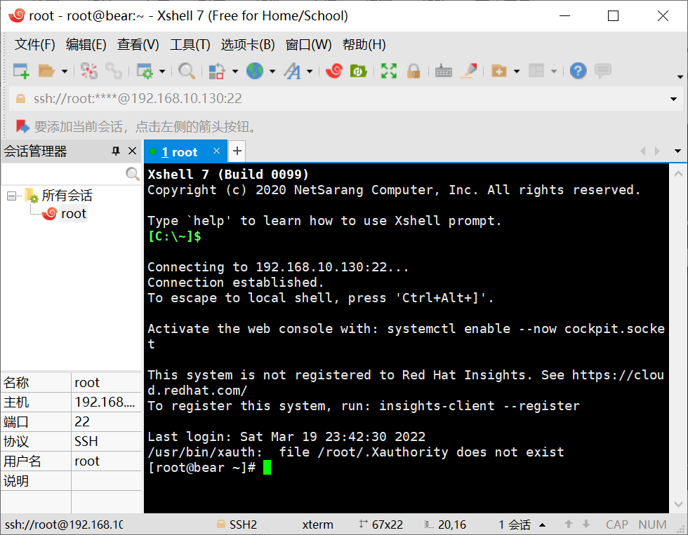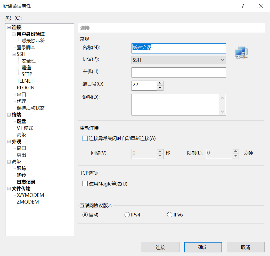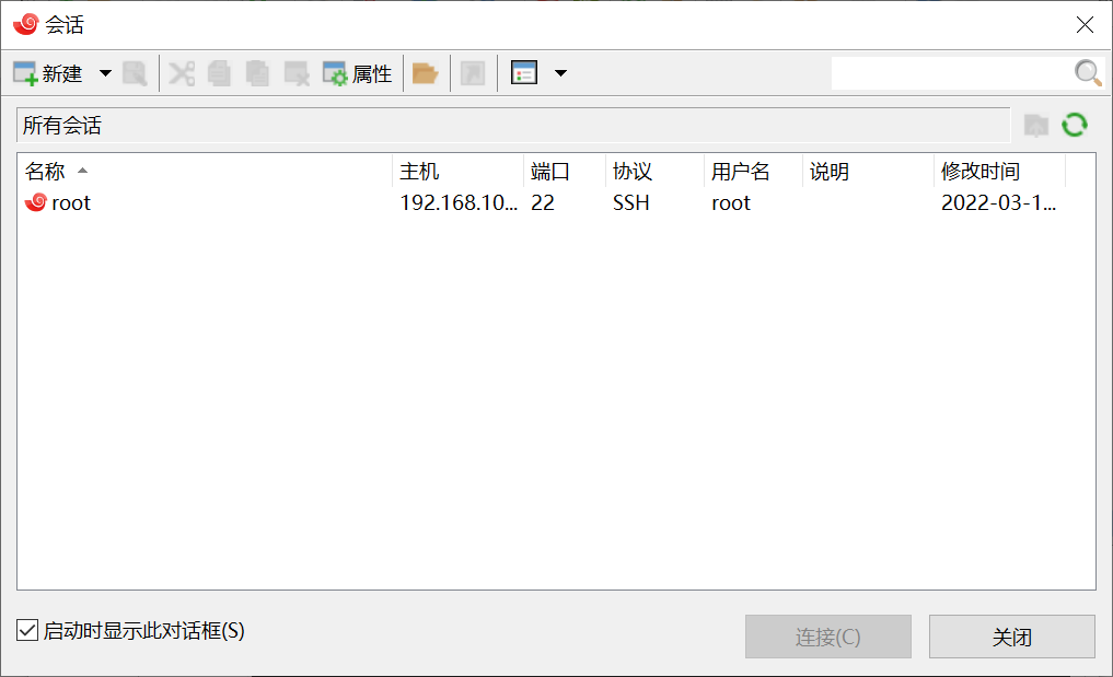- 双击打开“会话”窗口中的刚才创建好的会话记录