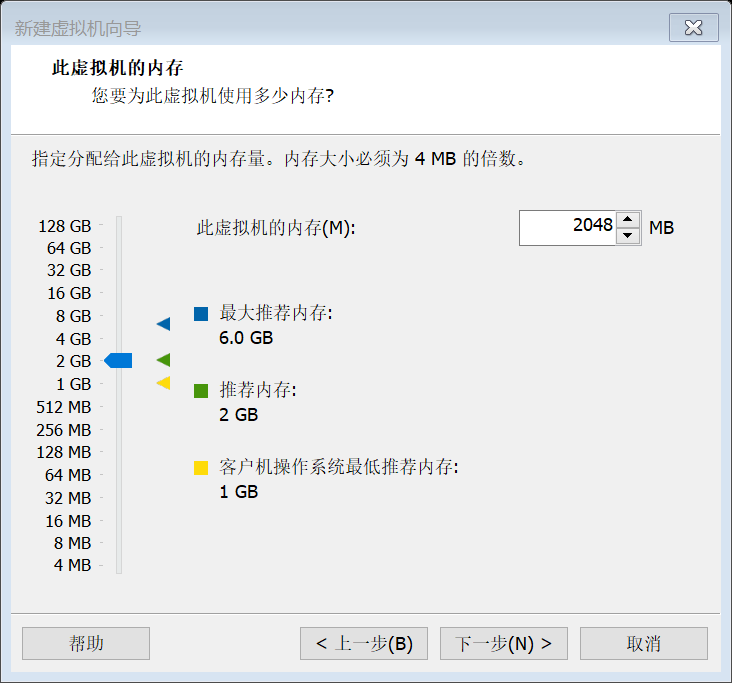 - 依照个人需求设置【内存】,这里我设置为【2048MB】,点击下一步