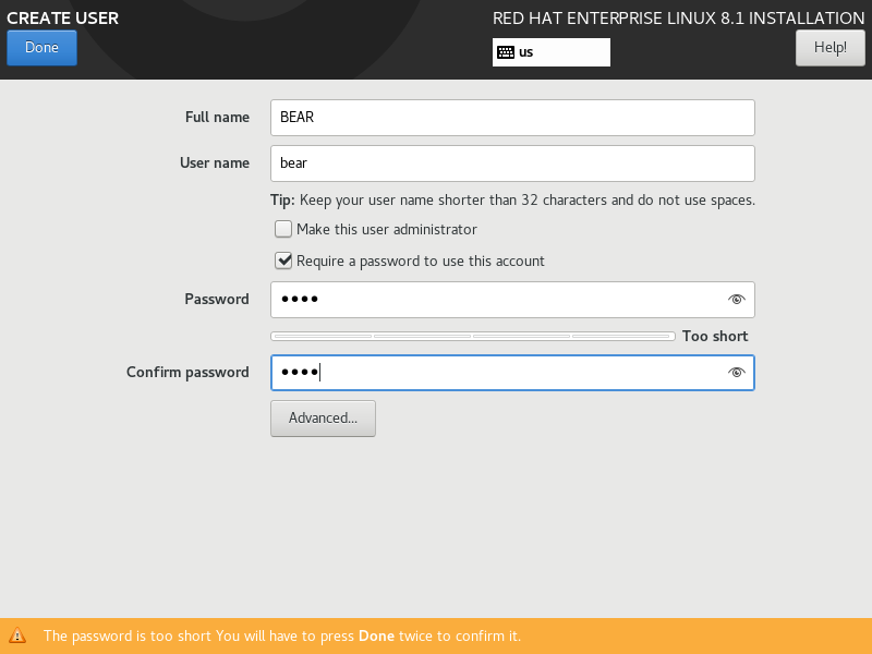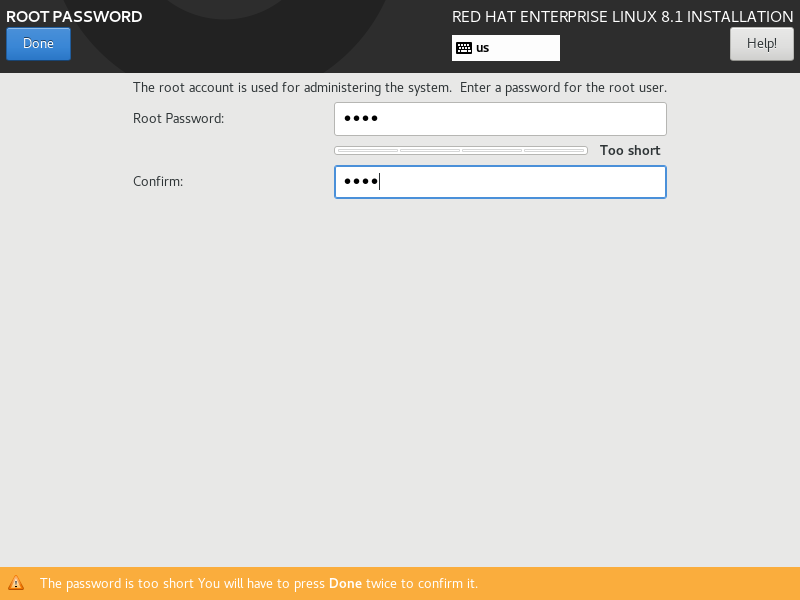 - 设置密码时如果为弱密码,需要点两次【Done】,设置完成后等待安装成功