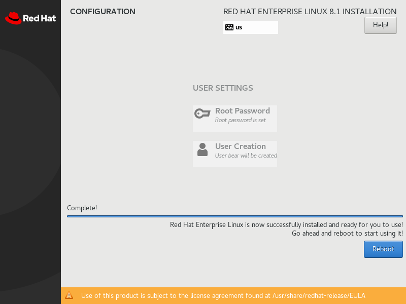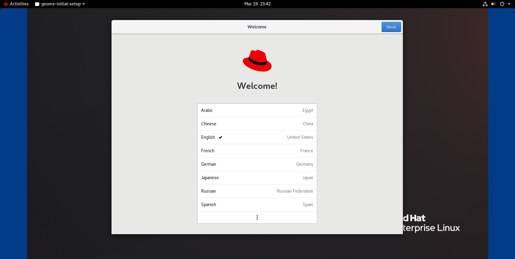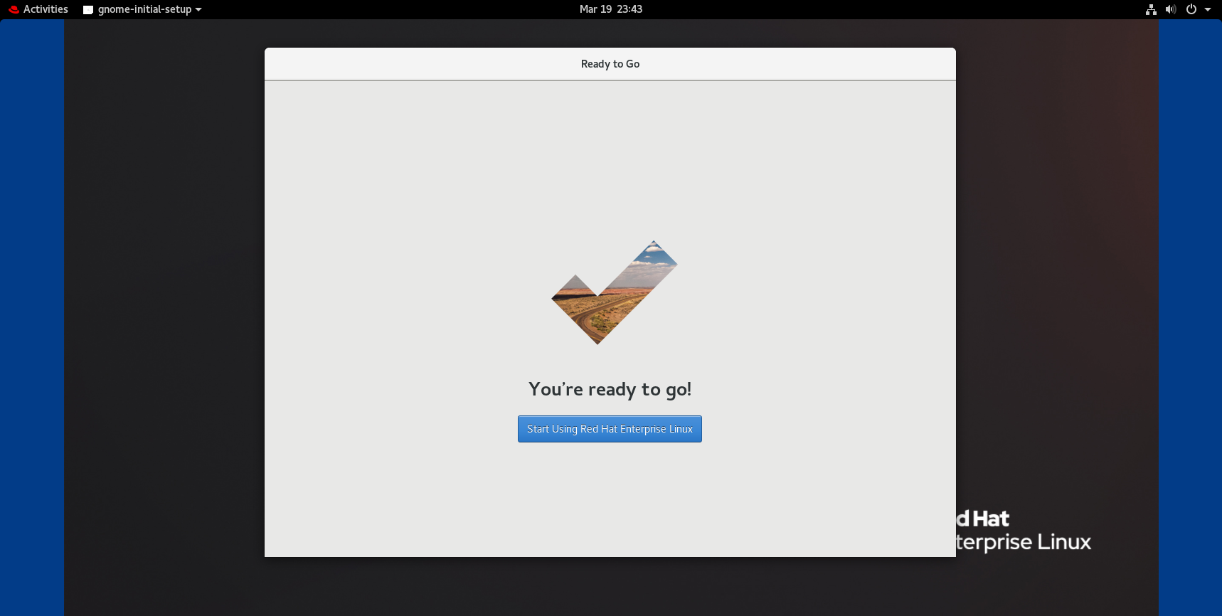 - 点击【Start Using Red Hat Enterprise Linux】,就可以使用了