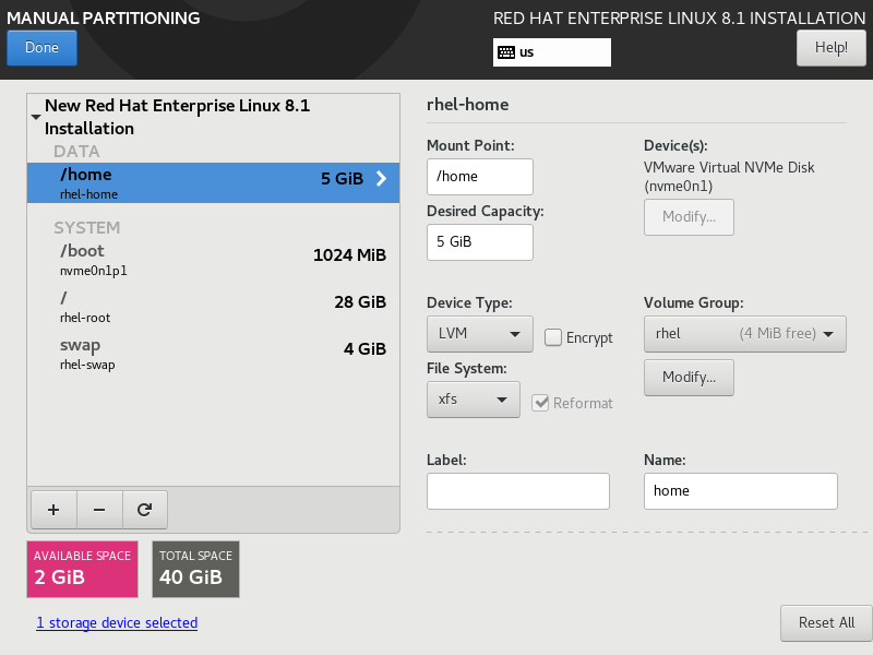 - 空间大小如图所示即可(按照自己的需求而定),点击【Done】