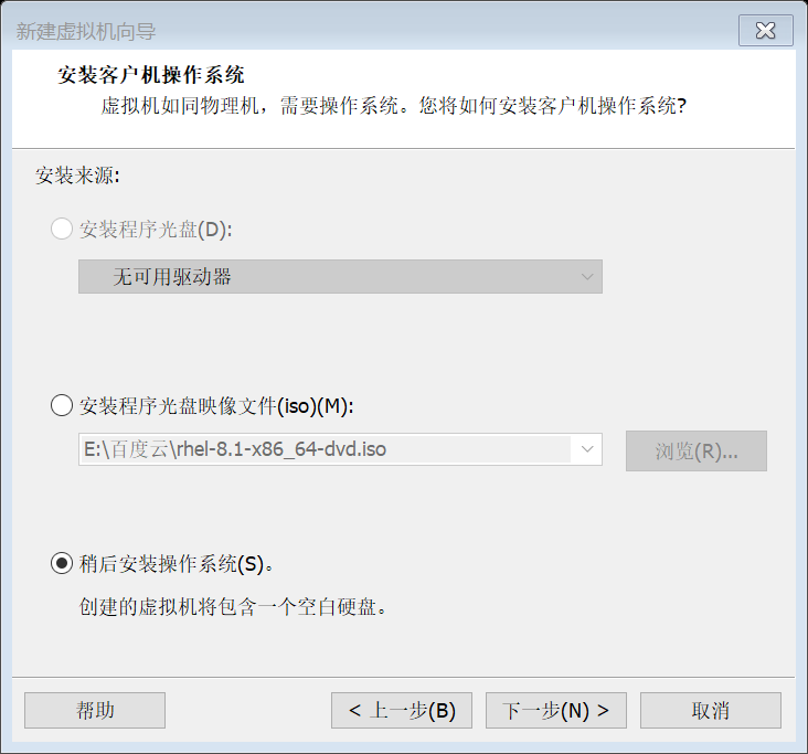 - 选择下载好的RHEL8的镜像文件(.iso文件),点击确定