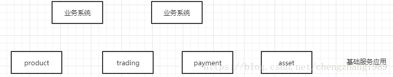 首先我们思考下这个流程,发起转让是业务线上的行为,在转让时,可能需要进行一些必要的检验等,这些都是业务所独有的特征,接下来,产品生成与上架,这里产品的维护和管理具有很强的通用性,是一个通用业务,应该抽出来成为一个基础服务应用,因为其他业务也会生成产品并上架,所以这里会拆分出一个product-app专门负责产品的维护管理工作,它是一个公共基础服务。接着用户的投资/交易也应该是是一个公共基础的服务应用,因为投资/交易具有通用性,同时投资时也涉及到支付,可能支持不同的支付方式,这里我们拆出两个应用,一个应用trading专门处理交易,比如交易前的各种check,各种展示等等,一个应用payment专门处理支付。然后就是到生成资产了,这也应该拆分出来成为一个公共的基础服务,专门用于资产的维护与管理。