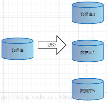 数据库拆分的另一种方式就是水平拆分,可以解决垂直拆分存在的单库瓶颈,水平拆分是把同一表(库)拆分到不同的库中,其大致示意图如下: