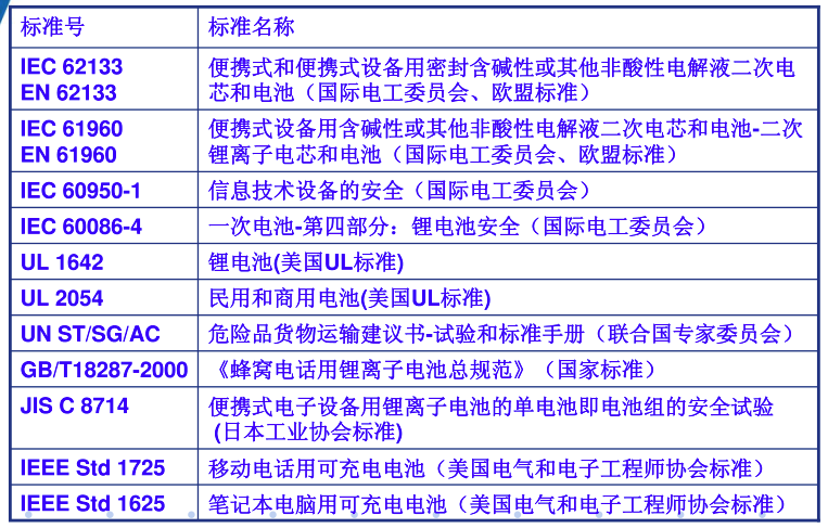 IEC 61960:2011《含碱性或其它非酸性电解质的蓄电池和蓄电组便携式锂蓄电池和蓄电池组》