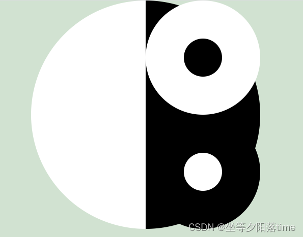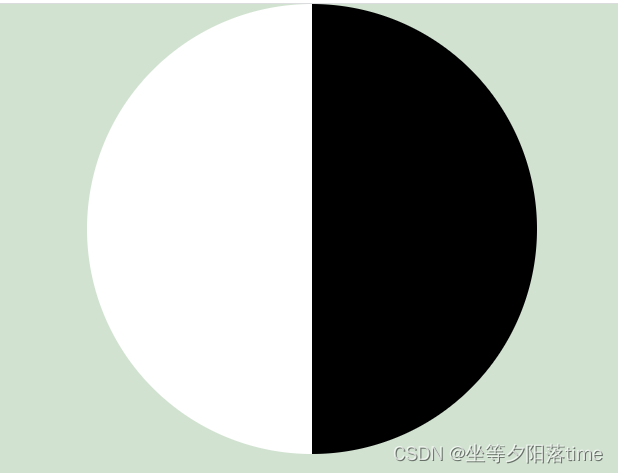 <head><meta charset="UTF-8"><meta http-equiv="X-UA-Compatible" content="IE=edge"><meta name="viewport" content="width=device-width, initial-scale=1.0"><title>八卦图旋转</title><style>* {margin: 0;padding: 0;}body {background: rgb(209, 226, 209);}.eight-diagrams {width: 0px;height: 600px;margin: 0 auto;border-radius: 50%;border-left: 300px solid white;border-right: 300px solid black;animation: rotate 3s linear infinite;}.eight-diagrams::before {content: "";display: block;width: 100px;height: 100px;background: black;border-radius: 50%;border: 100px solid white;margin: 0px 0px 0px -145px;}.eight-diagrams::after {content: "";display: block;width: 100px;height: 100px;background: white;border-radius: 50%;border: 100px solid black;margin: 0px 0px 0px -145px;}@keyframes rotate{0% {transform: rotate(0);} 100% {transform: rotate(350deg);} }</style>