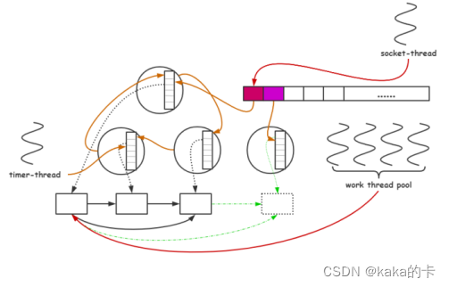 作用:处理读写 io 、数据包解压缩、业务逻辑处理;特别地:当同一个 io 在多个线程处理时,将写 io 转由网络线程处理;