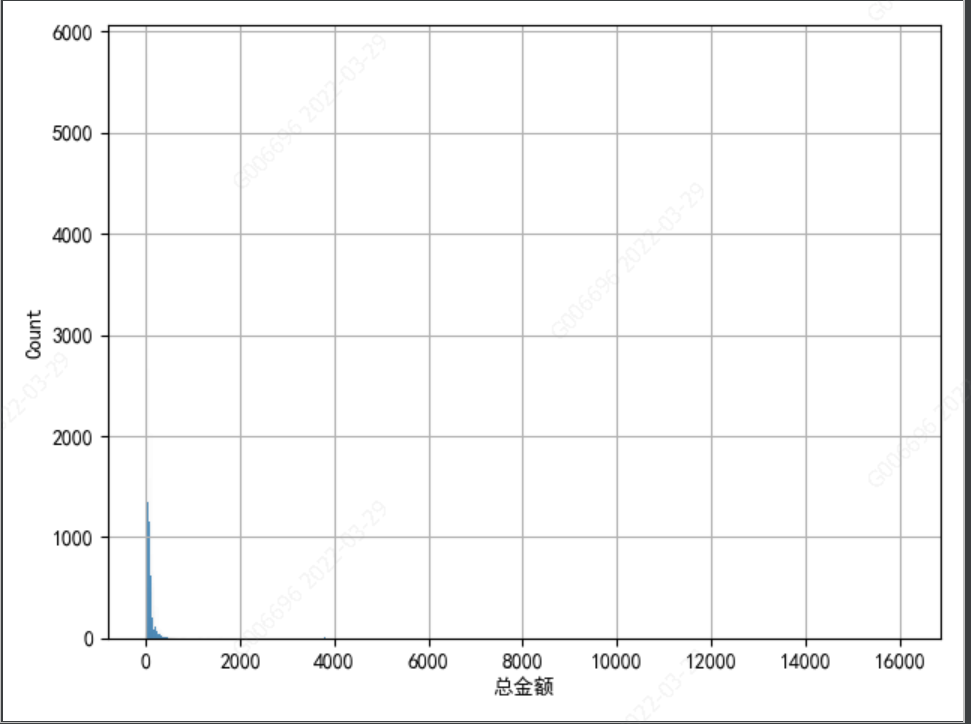 总金额500以上的数据虽然很少但刻度很大,包含进来严重拉伸了图形,不利于分析