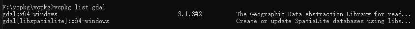 支持的gdal库可以使用如下命令:vcpkg install gdal[core,libspatialite] --triplet=x64-windows