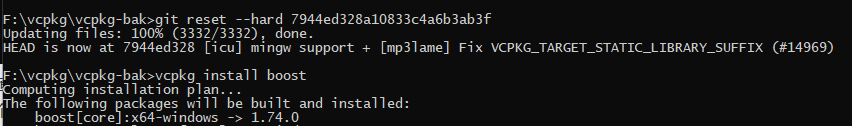 文件。C:\Users\Administrator>F:F:\>cd vcpkg/vcpkgF:\vcpkg\vcpkg>bootstrap-vcpkg.bat
