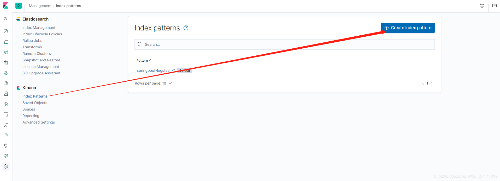 创建名称为springboot-logstash-*的index,然后在Next Step(下一步)中选择@timestamp的filter