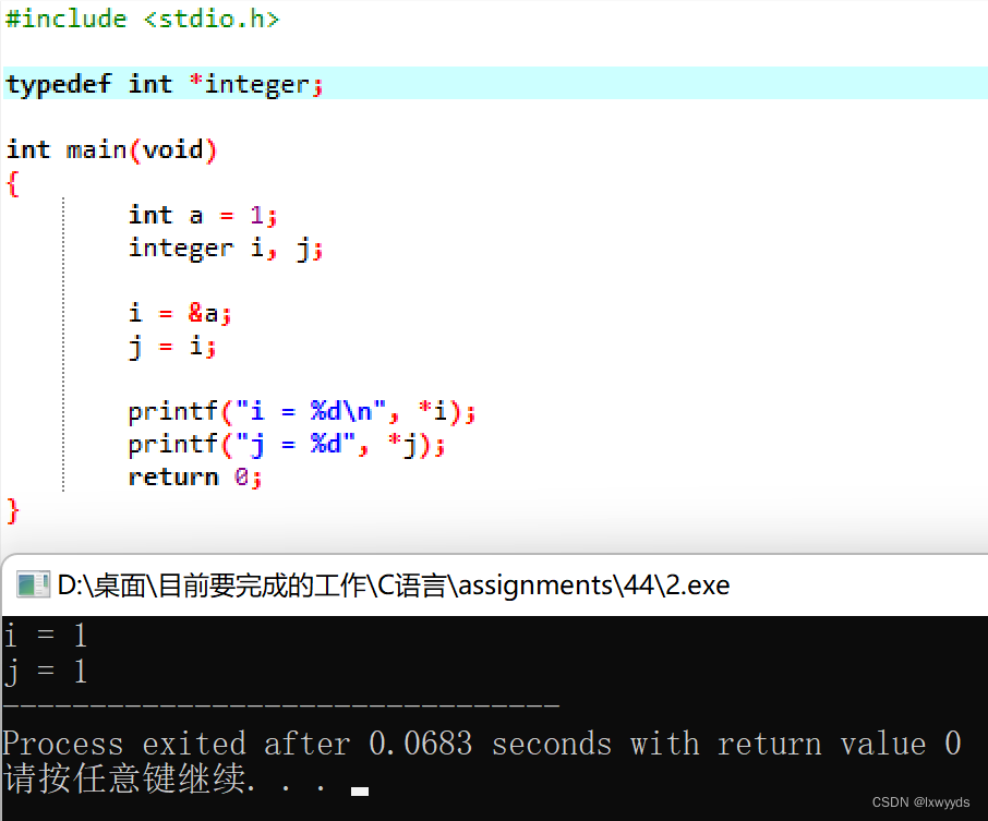 define这里为什么报错呢?是因为#define integer int*只能声明一个指针i,对第二个j是个int类型的数据,相当于int *i,j;所以变量j不能赋值一个地址,即会报错。修改代码: