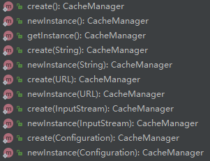 EhCacheManagerFactoryBean通过调用 CacheManager类的静态方法来获取实例,那么先看一下CacheManager类提供的static创建方法吧。