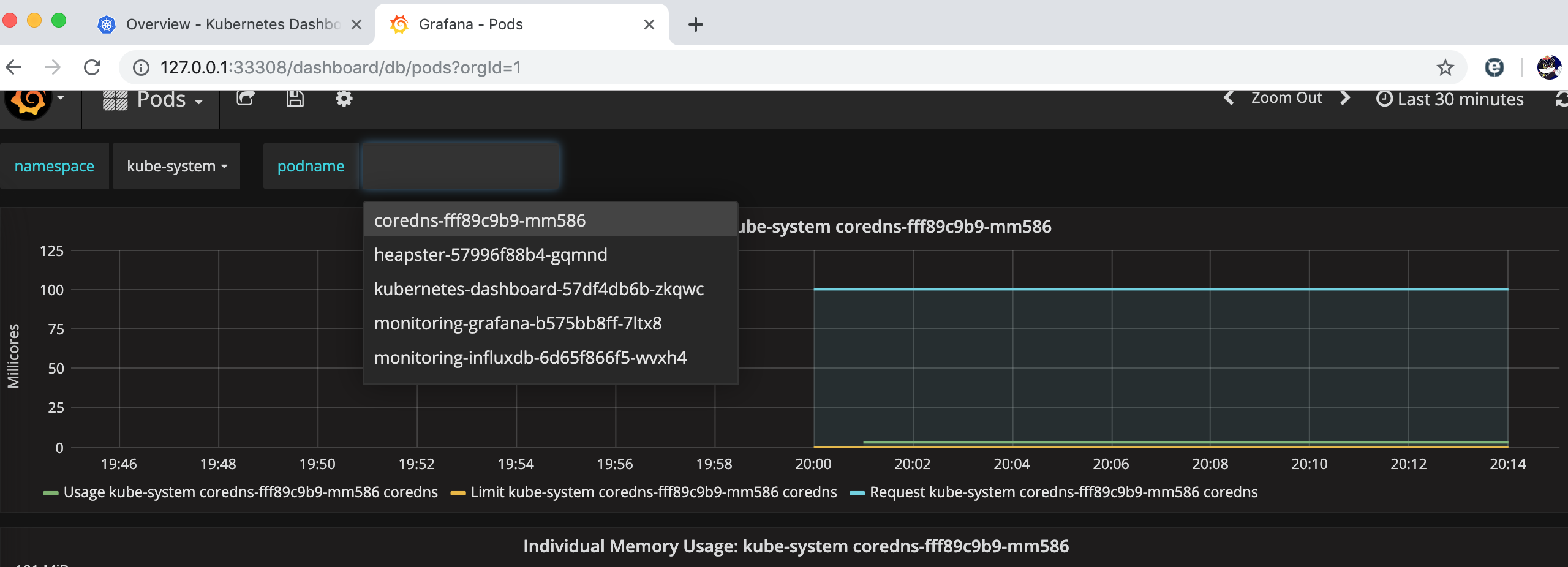之所以为了纪念一下,实在是到现在的版本为之heapster的设定和使用确实非常容易入手,可轻松实现heapster采集,influxdb存储,grafana显示的组合功能,同时与dashboard进行结合显示,而所有这些,基本都没有太多的设定作业要做,一般只需注意如下即可: