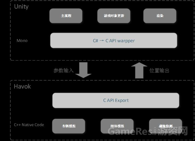 要实现Havok与Unity3D相结合,那么两个系统之间的交互通信机制便是实现的关键。Unity3D提供的二次开发平台是Mono,并没有提供NativeCode级别的接口,而Havok是完全以C++编写的Native实现。所幸,Mono为IL提供了跨平台的NativeCode交互机制。