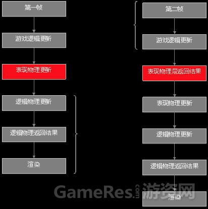 Havok默认是多线程模拟的,因此,可以对于游戏过程中仅作为表现的物理对象做异步更新,异步更新流程如图: