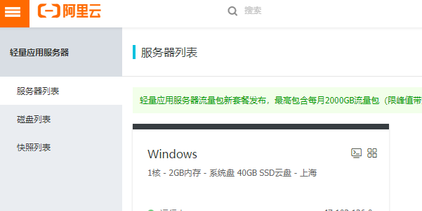 在付款成功后,就可以在控制台中看到自己的服务器了